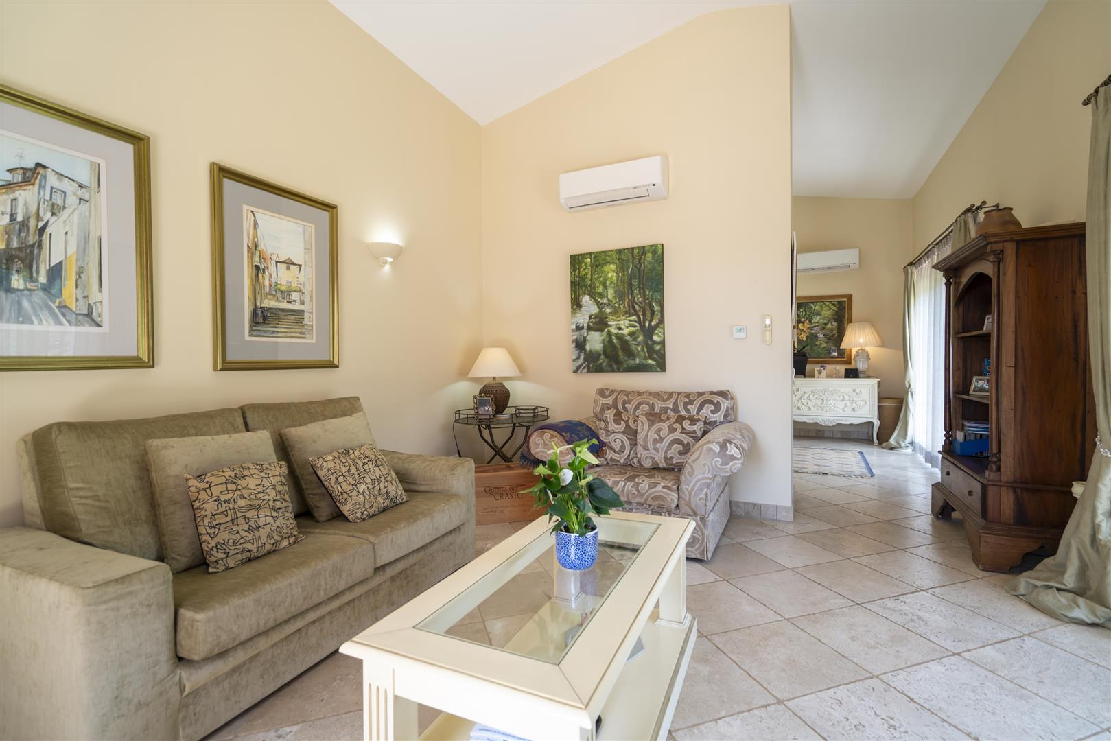A light and spacious room with glass sliding doors leading out to the terrace and gardens