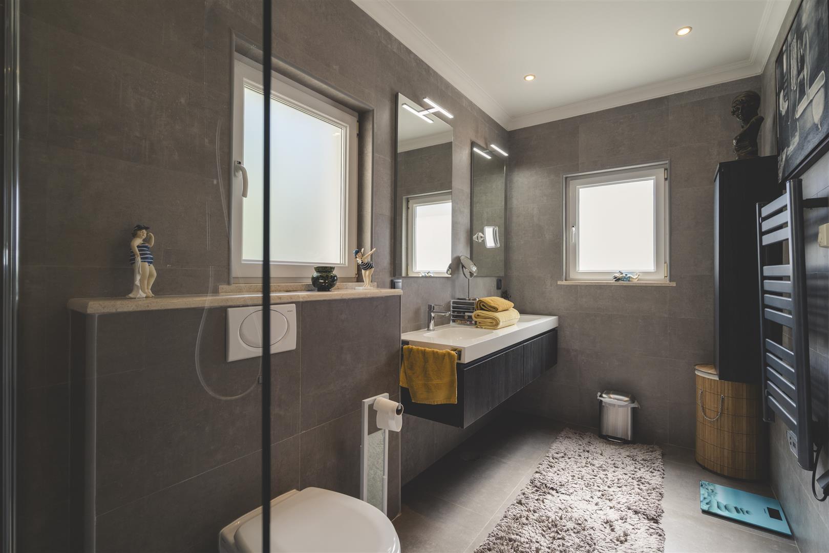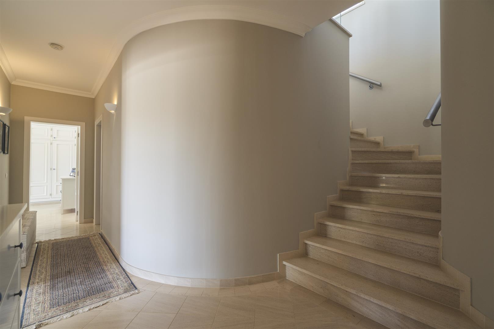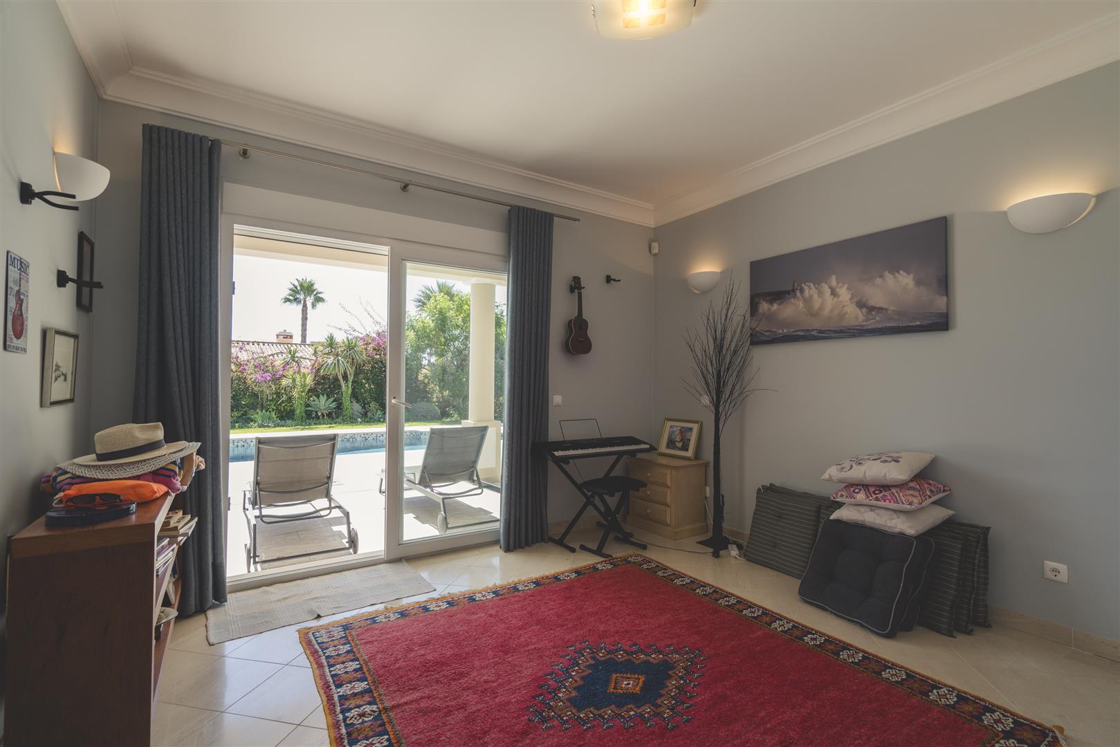 A staircase descends to the lower level, where you’ll find three further en-suite bedrooms and a versatile utility space that doubles as a gym and laundry area. Each bedroom features large glass sliding doors opening directly onto the pool terrace and mature garden. The master bedroom also benefits from a large dressing room.
